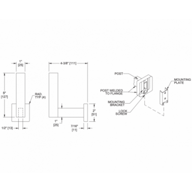 Soporte para repuesto de papel higiénico fabricado en acero inoxidable brillante, diseñado para montaje en superficie. Este accesorio elegante y funcional permite almacenar un rollo adicional de papel higiénico en baños comerciales y residenciales. Su diseño tipo bocina facilita la colocación del rollo de repuesto, asegurando un acceso rápido y cómodo. Cuenta con un tornillo de fijación de acero inoxidable ubicado en la parte inferior de la brida, el cual bloquea la unidad a la placa de montaje, garantizando una instalación firme y segura. Sus materiales de alta calidad brindan durabilidad, resistencia a la corrosión y un acabado brillante que complementa cualquier estilo de baño. Dimensiones: 1" x 5" x 4-3/8" (25 x 127 x 111 mm).