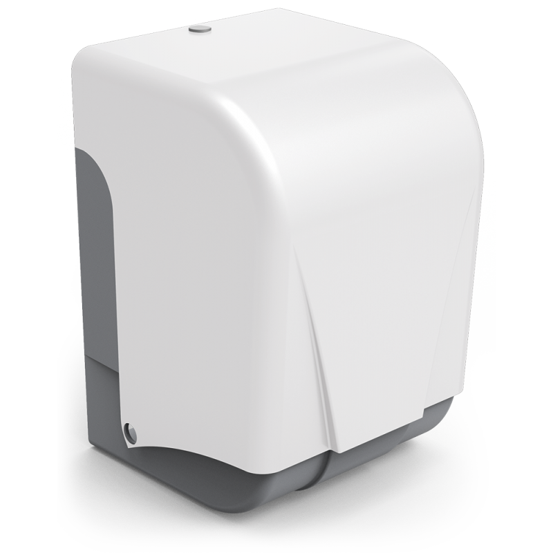 Dispensador de papel mecha muy funcional por su tamaño y sencillez. Para todo tipo de papel mecha con o sin precorte