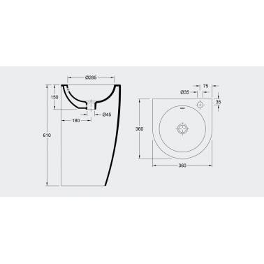 Lavabo infantil con columna modelo Junior Valadares. Lavabo columna fabricado en porcelana vitrificada de color blanco o negro. Tiene garantía de 20 años. Incluye los elementos de fijación.