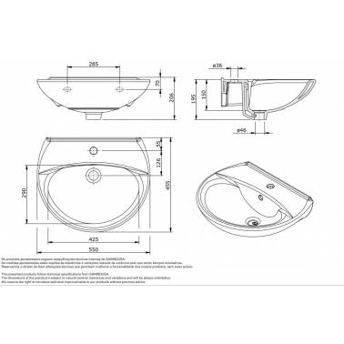 Lavabo 55 con juego de fijación color blanco o pergamón benissa marca Unisan.