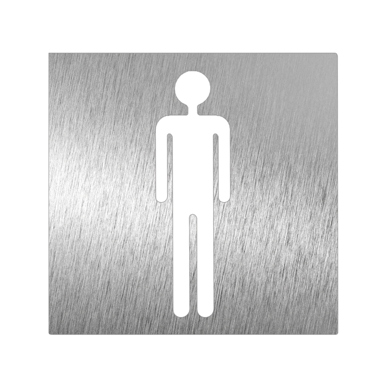 Pictograma de aseo hombre fabricado en acero inoxidable medidas 120x120x175 mm