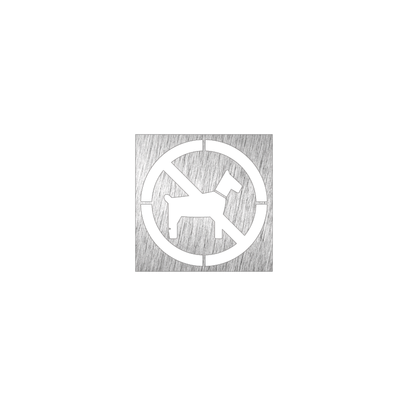 Pictograma de prohibido animales fabricado en acero inoxidable medidas 120x120x175 mm