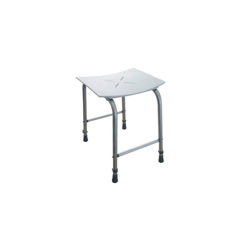 Taburete de baño con patas ajustables en altura Nofer. Acorde con normativa CE. El asiento drena el agua evitando su acumulación. Diseñado para instalarse en baños adaptados a personas con movilidad reducida
