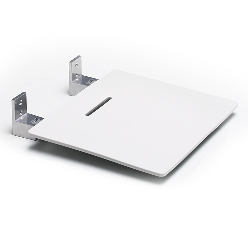 Asiento ducha a pared Solid Blanco marca Estoli: Asiento funcional para ducharse sentado. Plegable, para ser montado directamente a pared. Resina técnica reforzada en co-inyección, y aluminio resistente a la corrosión. Proporciona un diseño robusto y duradero en color blanco.