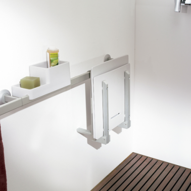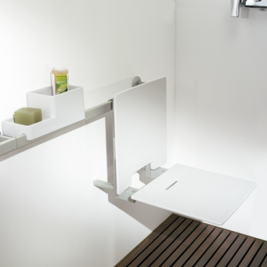 Asiento ducha Colgado Solid Blanco marca Estoli: Asiento de ducha con respaldo, plegable, en resina técnica reforzada y aluminio resistente a la corrosión.