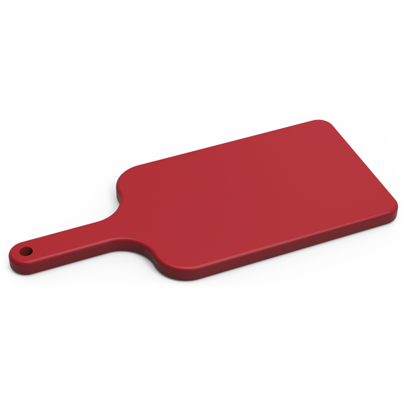 Tabla de cortar de fibra con mango ergonómico, medidas 450x200 mm. Color blanco, fácil de mantener y limpiar, ideal para el corte higiénico de alimentos en cocinas profesionales.