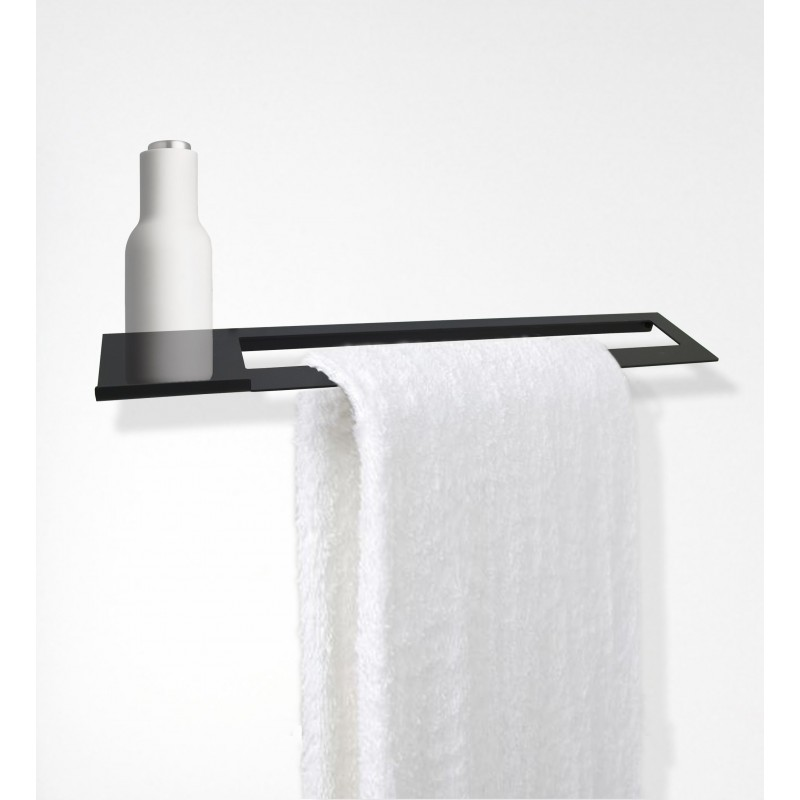 Toallero con bandeja Nina en acero inoxidable esmerilado. Perfecto para mantener las toallas organizadas con un diseño elegante y funcional. MEDIDAS: 500x100x22 mm.
