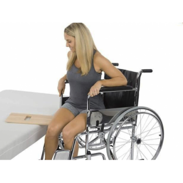 Tabla de madera laminada de alta calidad, con dimensiones de 76x21 cm, diseñada para soportar transferencias seguras y cómodas, aportando estabilidad y durabilidad en cada uso.