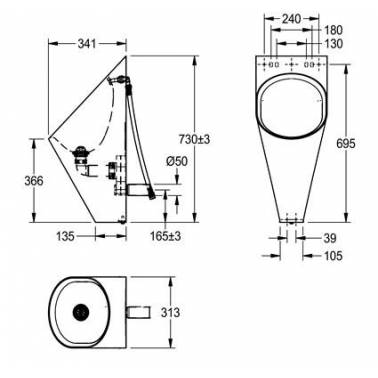 Urinario fabricado en acero de cromo-níquel acabado satinado marca Franke