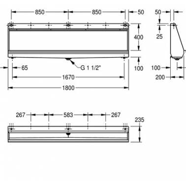 Urinario colectivo a pared fabricado en acero inoxidable acabado satinado de 1800mm marca Franke KWC