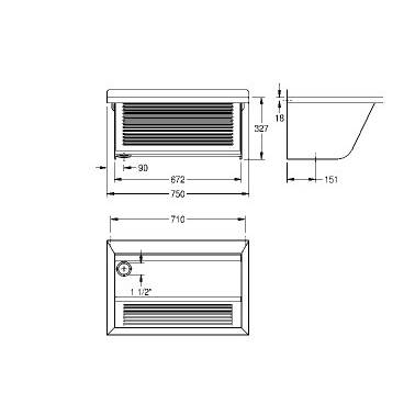 Placa trasera de 70 mm, con un espesor del material de 0,8 mm, válvula de desagüe de 1 1/2" y tubo rebosadero.