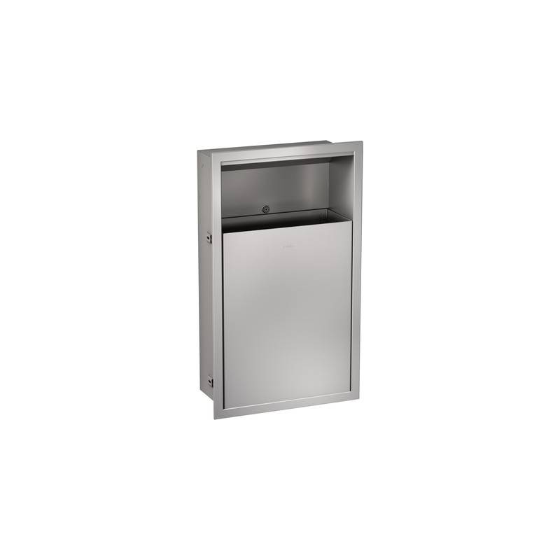Poubelle encastrable d'une capacité de 23L en acier inoxydable satiné modèle RODAN de la marque Franke. L'épaisseur du matériau est de 0,8 mm. Il possède un couvercle rabattable à fermeture automatique, un support de sac intégré et une serrure à cylindre à clé Franke standard. Comprend des vis et des chevilles en acier inoxydable. Ses dimensions sont de 410x690x171 mm (AxAxP)