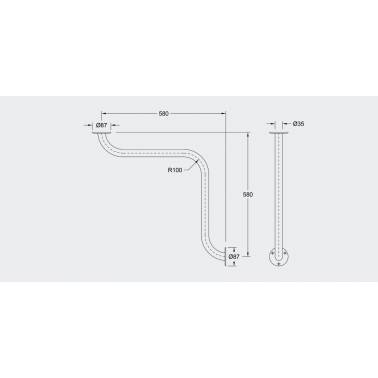 Poignée d'angle verticale en acier inoxydable brillant PMR Valadares. Poignée d'angle 600x600mm en acier inoxydable AISI 304 finition satinée. Disponible en finition brillante ou satinée. Il bénéficie d'une garantie de deux ans.