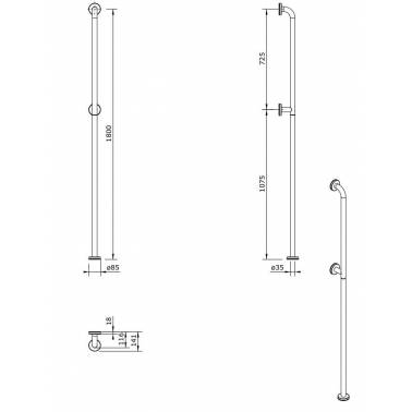 Poignée de support verticale 180 modèle mur-sol Nouvelle marque Wccare Unisan