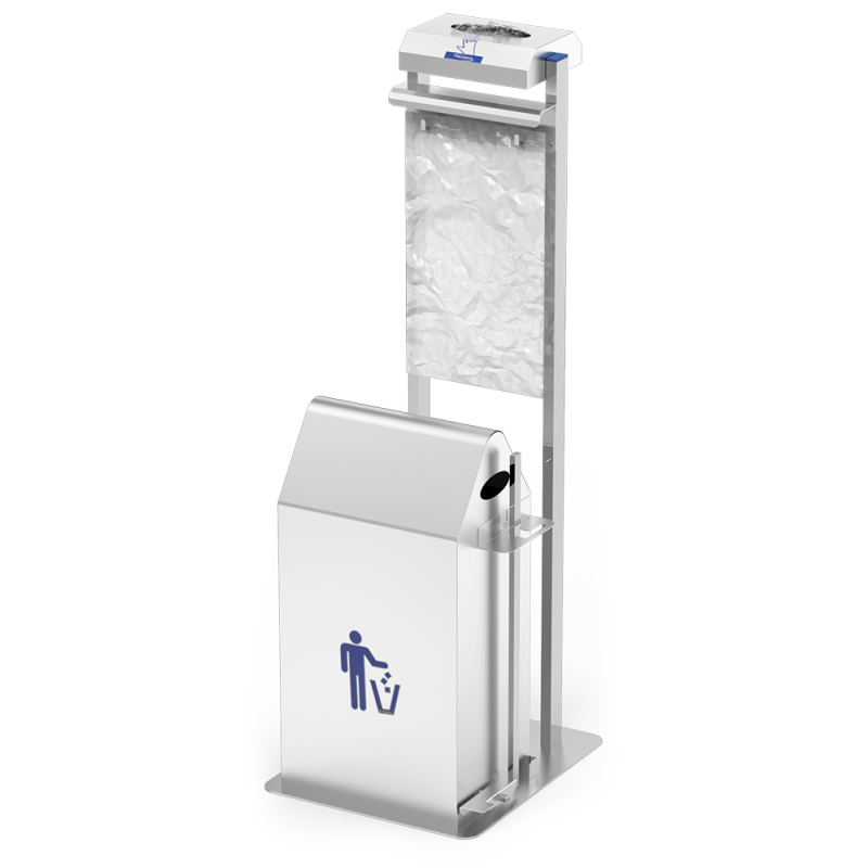 Conjunto dispensador de guantes y bolsas colgantes con papelera basculante a pedal marca Fricosmos