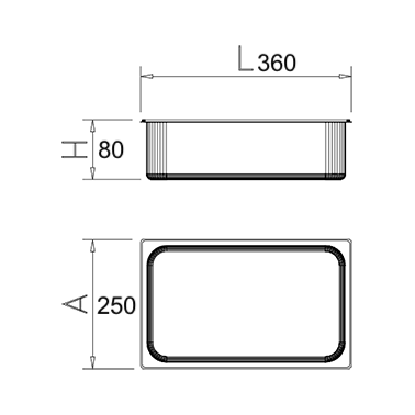 Cubeta de policarbonato para heladería, dimensiones 360x250x80 mm. Perfecta para el almacenamiento seguro y eficiente de helados y otros productos congelados.