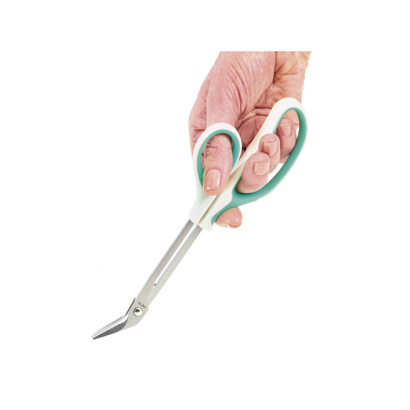 La tijera de pedicura de 20 cm de largo marca Ayudas Dinámicas es una herramienta diseñada especialmente para personas con movilidad reducida o dificultades para agacharse. Su diseño extralargo permite alcanzar cómodamente los pies sin necesidad de inclinarse, facilitando así el autocuidado y promoviendo la independencia. Cuenta con grandes asas ergonómicas que permiten introducir toda la mano, ofreciendo mayor control y precisión durante el uso. Las cuchillas curvadas de acero inoxidable, con una longitud de 3 cm, han sido diseñadas para ofrecer una postura óptima al cortar las uñas, mientras que la cuchilla superior está ligeramente dentada, lo que evita el deslizamiento sobre la uña y mejora la seguridad. Esta tijera de pedicura combina funcionalidad, comodidad y diseño ergonómico, convirtiéndola en una solución ideal para el cuidado personal diario de personas mayores o con limitaciones físicas.