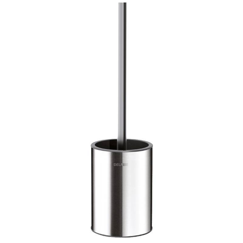 Escobillero WC mural sin tapa de acero inoxidable pulido satinado, brinda una solución moderna y resistente para mantener el baño limpio. Marca Delabie.