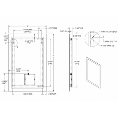 Espejo sin marco vidrio plateado 30" x 36" (762 x 914 mm) con iluminación LED y borde esmerilado montaje en superficie marca ASI