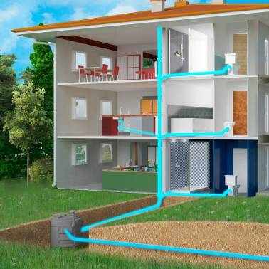 Estación de bombeo especial para aguas pluviales con un depósito de 610 litros y dos bombas sumergibles bicanal trifásicas modelo Sanifos 610 SLD marca SFA. Disponible también con una bomba sumergible bicanal monofásicas o dos bombas sumergibles bicanal monofásicas. Diseñado para aguas pluviales en un entorno comercial, doméstico o pequeño industrial.