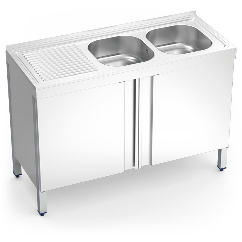 Évier 2 bacs et égouttoir gauche avec portes battantes 2000x700x850 mm Fricosmos