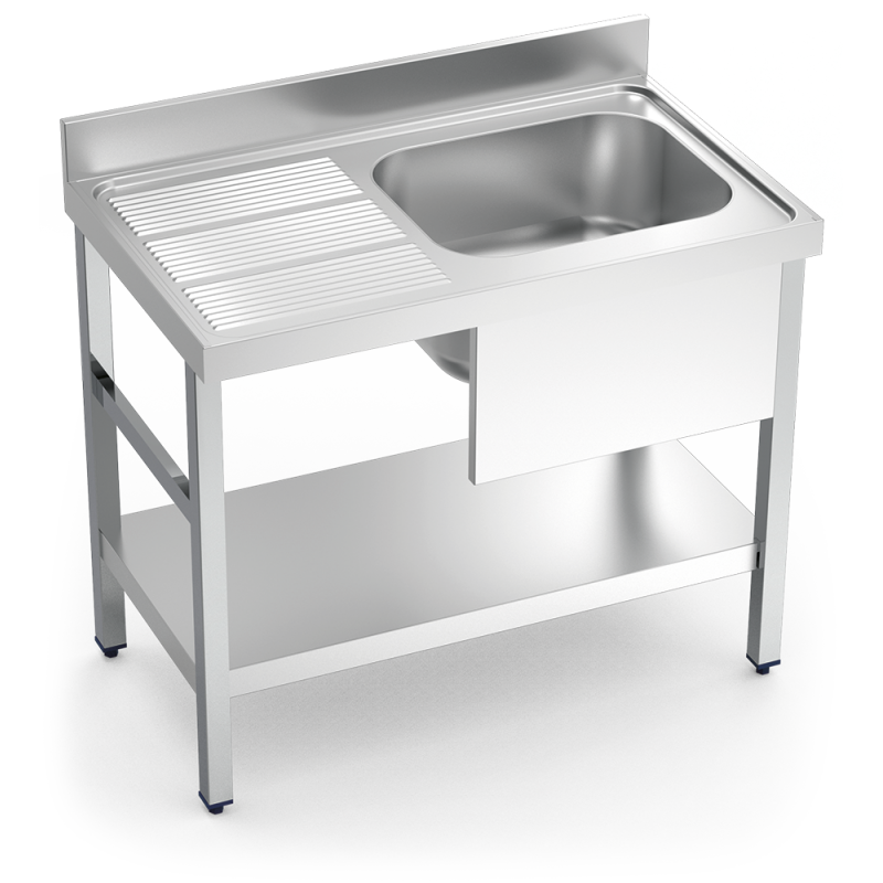 Évier en acier inoxydable 1200x700x850 mm avec support, tablette et égouttoir gauche