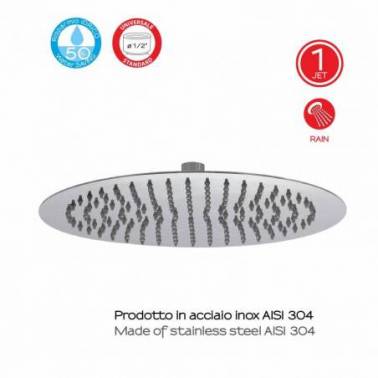 Vivez une douche revitalisante avec le jet de douche chromé 1 Jet Tech 04. Ce pulvérisateur offre un seul type de jet pour une expérience de douche indulgente. Fabriqué en acier inoxydable AISI 304, il garantit durabilité et résistance à la corrosion. Doté d'un raccord universel 1/2", il s'installe facilement sur la plupart des systèmes de douche standards. Avec un diamètre de 25 cm, il offre une couverture suffisante pour une expérience de douche rajeunissante. Profitez de la qualité et de la performance avec la Pomme de Douche 1 Jet Tech 04 Chrome .
