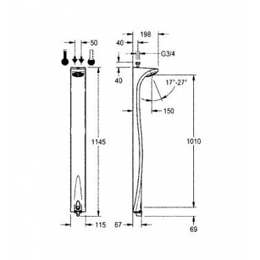 Panneau de douche avec batterie thermostat avec entrée d'eau par le dessus modèle AQUACONTACT marque Franke