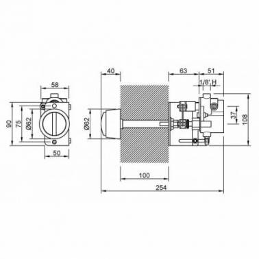 Grifo pulsador temporizado mezclador NOFER, para ducha, cierre automático, puls antiblocaje. Consumo de agua 'LEED'. Sistema antilegionella. Instalación tras muro. Incluye grifo, pulsador y conjunto trasmuro. Temporización: 30±10 segundos. Dimensiones: 108 alto x 58 ancho x 254 fondo (mm).