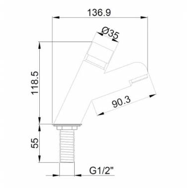 Grifo temporizado de un agua para instalación sobre encimera versión Eco marca Nofer. Hay varias opciones disponibles, la versión eco con pulsación normal, con pulsación suave, con sistema de regulación del tiempo o con sistema de seguridad. También disponible en versión estándar y versión Leed. Fabricado en latón cromado bajo la norma EN248. Conexión a red ½”G, rosca cartucho M28x1’5mm. Sus medidas son 118mm de alto, 35mm de ancho y 137mm de fondo.
