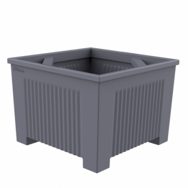 Jardinera cuadrada en polietileno gris, resistente y ligera. Su diseño práctico y moderno se adapta a diferentes entornos exteriores, facilitando su manejo y durabilidad.