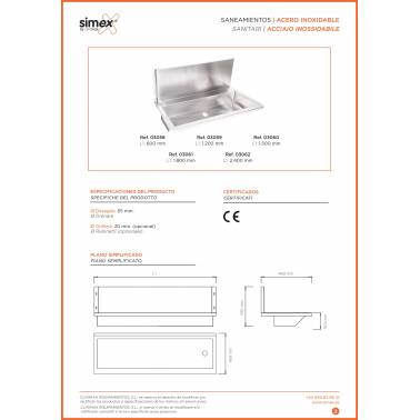 Lavabo collectif avec plastron en acier inoxydable AISI 304 satiné sans robinetterie. Ses dimensions sont de 390x1200x500 mm
