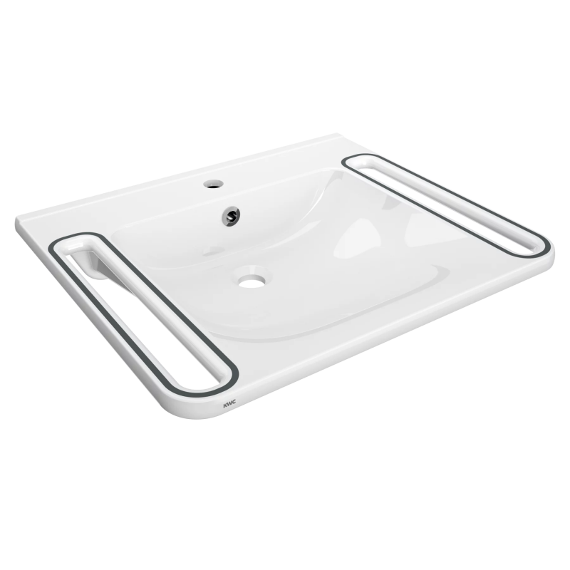 El lavabo individual MEDICARE de Franke KWC está especialmente diseñado para espacios accesibles y funcionales, adaptado a personas con movilidad reducida. Fabricado en mineral MIRANIT aglomerado con resina, su superficie es completamente lisa, no porosa y muy resistente al uso y a temperaturas de hasta 80 °C. El acabado blanco alpino con rayas gris basalto en los bordes aporta una estética profesional y segura. Su diseño incluye cubeta moldeada sin costuras con rebosadero y orificio para grifería de 35 mm, además de asideros integrados para mayor seguridad. Gracias a su forma adaptada, permite el acceso de sillas de ruedas sin comprometer la funcionalidad. Incluye protector contra salpicaduras trasero y herrajes para montaje a pared. Dimensiones: 650 x 150 x 550 mm. Cubeta: 450 x 117 x 415 mm. Una solución técnica y estética ideal para instalaciones sanitarias inclusivas.