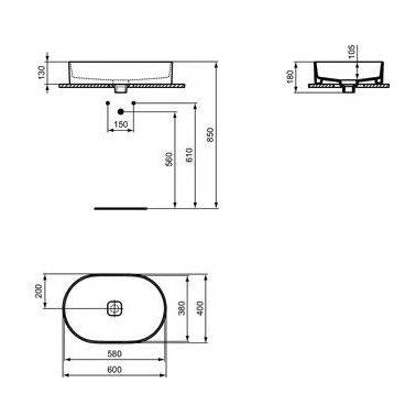 Vasque à poser ovale 60cm sans trop-plein Ideal Standard Strada II Ideal Standard . Vasque en grès sans trou pour robinet avec kit de fixation inclus et garniture de drain en céramique.