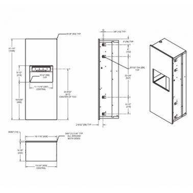 El dispensador automático de toallas de papel y receptáculo de desechos Piatto de la marca ASI, con alimentación por corriente alterna (CA), ofrece un diseño sofisticado y funcional. Diseñado para empotrarse completamente en el plano de la pared del lavabo, presenta un acabado sin juntas que caracteriza a la colección Piatto. Su puerta de fenólico blanco está equipada con bisagras ajustables de alta calidad y un pestillo interno accionado por muelle, manteniendo todos los herrajes ocultos para un aspecto minimalista. Este modelo cuenta con un sistema no táctil con detección de proximidad que dispensa automáticamente toallas de papel. Es compatible con rollos estándar de 8″ de diámetro x 8″ de ancho, con capacidad para rollos de hasta 800 pies (244 m) de largo. Cambia automáticamente al rollo secundario cuando el principal se agota. Alimentado por un adaptador de CA de bajo voltaje aprobado por C-UL-US y CE (suministrado), funciona con 110-240VAC, 50/60 Hz, proporcionando una salida de 5VDC @ 1A. El receptáculo de desechos tiene una capacidad de 37,3 litros (9,9 galones) y se vacía manualmente. Dimensiones: Abertura de pared acabada (FWO): 16-1/8″ x 41-5/16″ x 10″ (410 x 1049 x 254 mm); Tamaño de la unidad: 16-1/16″ x 41-1/4″ x 9-11/16″ (408 x 1048 x 246 mm). Ideal para instalaciones que buscan tecnología avanzada y diseño moderno.