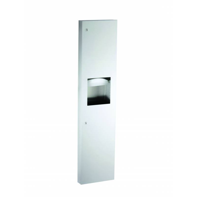 Distributeur d'essuie-mains et poubelle semi-encastrés TrimLine Bobrick Series. Il est en acier inoxydable satiné. La porte présente un coude à 90 ° avec des bords biseautés sans soudure. Distribuez 600 serviettes pli en C ou 800 serviettes à plis multiples. Le conteneur étanche amovible d'une capacité de 6L. Il a une serrure avec une clé pour offrir une plus grande sécurité. Ses dimensions sont 290x1360x95mm