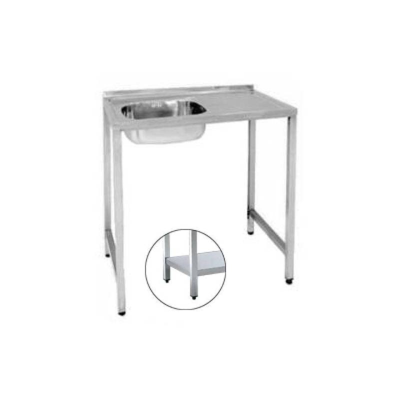 Evier industriel inox avec 1 cuve et 1 égouttoir à droite, dimensions 800 x 500, avec cadre et étagère, marque Nofer.