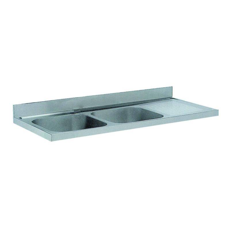 Evier industriel inox, 2 cuves et 1 égouttoir à droite, 1400 x 600 marque Nofer