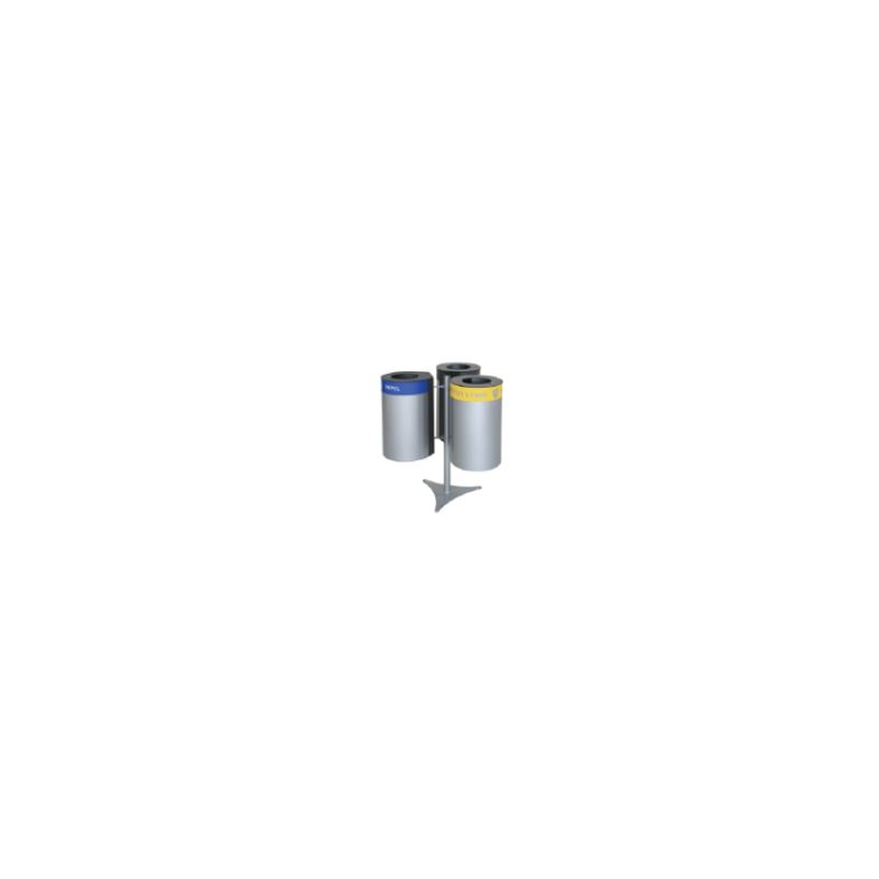 Isla Malta con mástil de 1M y 3 receptáculos de 120L (3x40L). Este sistema de reciclaje está diseñado para optimizar la separación de residuos en entornos públicos, ofreciendo tres compartimentos que permiten una gestión eficaz y organizada de los desechos. Su estructura robusta y su diseño funcional aseguran una larga durabilidad y un uso práctico en cualquier área de reciclaje.