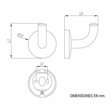 Cintre simple en laiton chromé avec une finition brillante, modèle Monaco Nofer. La collection d'accessoires de salle de bain Monaco du fabricant Nofer convient à une installation dans des environnements publics grâce au fait qu'ils sont fabriqués dans un matériau durable et résistant à la corrosion. Il peut être facilement nettoyé. Le système de fixation reste caché et est vissé au mur au moyen d'une plaque avec des vis en acier inoxydable incluses et des accessoires en verre soufflé. Ses dimensions sont 67x54x64mm (Hauteur x Largeur x Profondeur)