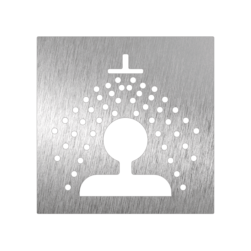 Le pictogramme de douche en acier inoxydable mesure 120x120x175 mm