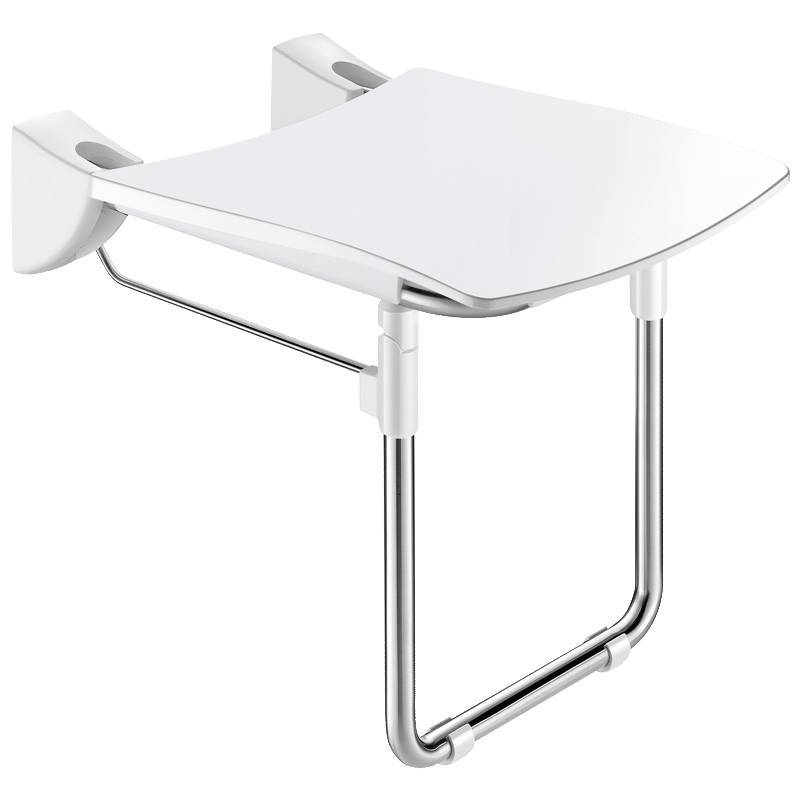 Siège de douche rabattable Grand Confort avec pied en acier inoxydable poli satiné, marque Delabie