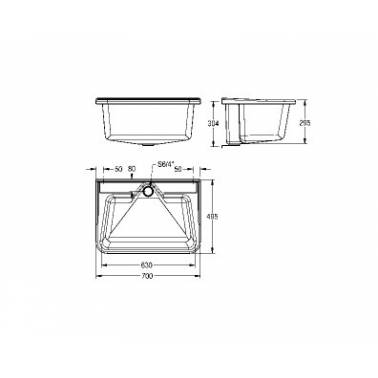 Plateau en polyester renforcé de fibre de verre de couleur gris décor, modèle SIRIUS, marque Franke. Bac d'évier polyvalent pour montage mural. Seau sans trous pour robinetterie (à utiliser avec les robinets muraux), raccord de vidange BSP 38 mm avec bouchon de vidange 1 1/2 "/ tube complet avec supports muraux. Les dimensions sont 700x320x495 mm (LxHxP) Couleur décor-gris
