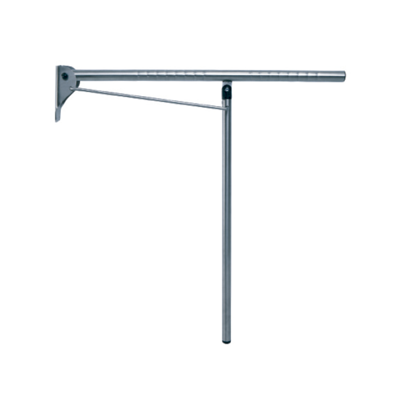 Barra de apoyo mural abatible con apoyo en suelo especialmente diseñada para inodoros.
