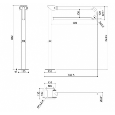 Asidero abatible sobre columna blanca de tubo de acero galvanizado 13,5x69,2x84,2cm barra gris piedra
