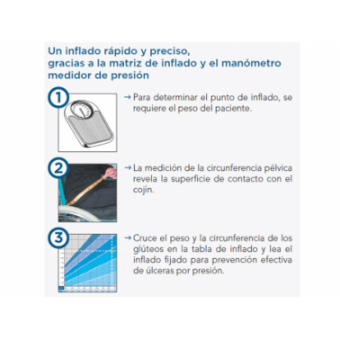 Cojín de celdas de aire de perfil estándar (10 cm) con dos válvulas independientes que permiten una regulación diferenciada de la presión, adaptándose a cada usuario según su peso, morfología y necesidades clínicas. Fabricado con el exclusivo material Laxprene desarrollado por SYST'AM: antialérgico, altamente resistente al desgarro y extremadamente suave al tacto. Ideal para pacientes con riesgo muy alto de úlceras por presión o con patologías neuromotoras, parálisis, espasticidad, contracturas o desequilibrio pélvico. Ofrece una distribución uniforme de la presión mediante un diseño de colmena que optimiza la superficie de contacto y permite una inmersión profunda y eficaz. Su canal interno de aireación favorece la ventilación, reduciendo efectos de maceración y fricción. Incluye bomba de inflado manual y manómetro digital para ajuste preciso del inflado. Su funda técnica es impermeable, antideslizante y transpirable, equipada con ranuras que mejoran el flujo de aire y evitan la acumulación de humedad. Los compartimentos dobles pueden inflarse a diferentes presiones, lo que proporciona mayor estabilidad y personalización. Dimensiones: 46x40x10 cm. Peso máximo de carga: 120 kg. Recomendado tanto para la prevención como para el tratamiento activo de úlceras por presión (Etapas I a IV según EPUAP). Cojín de alto rendimiento clínico y gran confort para usuarios exigentes.