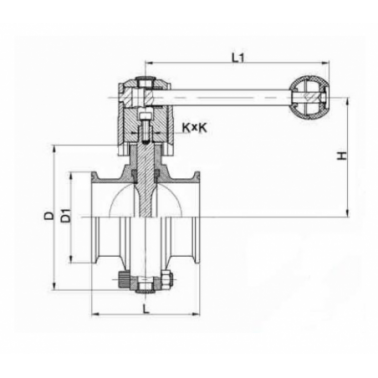Válvula mariposa con extremos clamp en pulgadas, diseñada para aplicaciones sanitarias. Fabricada en acero inoxidable AISI 316L para una máxima durabilidad y resistencia a la corrosión. El elastómero EPDM garantiza un sellado seguro y confiable. Los extremos clamp cumplen con la norma BS 4825-3, facilitando la instalación. El accionamiento manual de tres posiciones y bajo torque permite un manejo sencillo del flujo. El acabado pulido sanitario (Ra 0,8 µm) asegura una fácil limpieza y mantenimiento. Capaz de trabajar a una presión máxima de 10 bar y temperaturas de hasta 120 ºC. Dimensiones: DN 100, L 106 mm, D 154 mm, D1 119 mm, H 122 mm, L1 160 mm, K x K 11 x 11 mm, peso 3.600 kg.