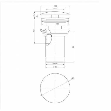 Semi-automatic round plug drain. Existing finishes: chrome and nickel