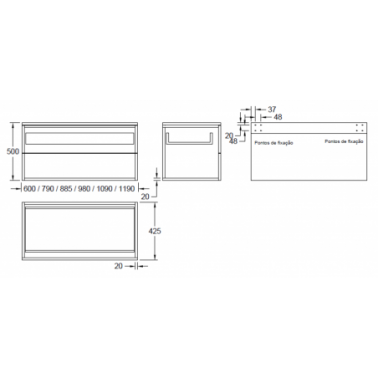 Box 120x43 sin encimera y con 2 cajones (E) marca Valadares: Box de 120x43 cm sin encimera, con 2 cajones (E). Diseñado para maximizar el espacio de almacenamiento con dos cajones adicionales.