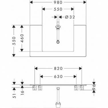 Consola 980/550 con recorte en el centro para lavabo sobre encimera 600/480 acab. roble natural Hansgrohe